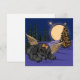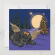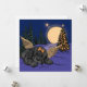 Precioso ángel de nieve de cachorro Terranova dibujado y coloreado a mano en un paisaje invernal iluminado por la luna