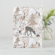 Una tarjeta de saludo navideña en blanco con un patrón de animales del bosque por Jenn Steffen, Jenn's Emporium.