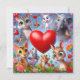 Esta linda tarjeta del Día de San Valentín presenta Animales con Corazones Tarjeta de vacaciones.