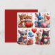 Tarjeta Festiva Animales del Día de San Valentín con Corazones