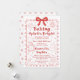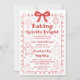 Invitación festiva de repostería navideña con una encantadora ilustración de estilo de línea roja con un marco de lazo decorativo, galleta de jengibre, pastelito, tazón de mezclar y elementos navideños dibujados a mano acogedores. La frase juguetona "Baking Spirits Bright" crea un ambiente cálido y alegre perfecto para un intercambio de galletas navideñas o una fiesta de repostería de Navidad. Personalice el nombre del anfitrión, la fecha, la dirección y los detalles de RSVP para crear una invitación única y elegante para amigos, familiares o compañeros de trabajo durante la temporada navideña.