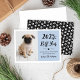 Envía una sonrisa esta temporada navideña con una divertida tarjeta de fiestas "Ruff Year" que presenta a tu perro mascota. Esta tarjeta de foto presenta una foto de tu cachorro junto a un texto moderno escrito a mano y un texto personalizado que puedes personalizar con un mensaje de fiestas y año nuevo, el nombre de tu perro mascota y tu apellido / familia. El diseño de tipografía minimalista incluye un fondo azul polvoriento claro y lindos acentos de huellas de patas en blanco y negro.
