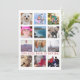Comparte tus momentos más memorables del año pasado usando esta tarjeta de collage de fotos personalizado 12. La parte delantera tiene espacio para 12 fotos cuadradas, una por mes. Hay una línea de texto que puedes personalizar con el año correcto o cambiar para leer lo que quieras. Cada cuadrado de fotos tiene la abreviatura del mes impresa en blanco, pero puede cambiar fácilmente el color del tipo o mover la posición haciendo clic en el botón 'Personalizar más adelante' y hacer todos los ajustes necesarios. La parte trasera tiene un borde de dibujo rojo y blanco moderno y un rectángulo blanco en el que se pueden escribir explicaciones breves para cada foto de portada. Las palabras "Feliz Navidad" están impresas en rojo, pero este arte puede ser eliminado y reemplazado por tu propio texto si lo deseas. Termine la tarjeta con su propia firma de texto, simplemente utilice las plantillas fáciles y proporcionadas! No dude en 'ponerse en contacto con el Diseñador' con cualquier pregunta o si necesita ayuda.