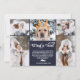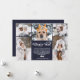 Un año nuevo moderno y elegante en revisión tarjeta de saludo con 5 fotos de collage y un tipo de letra moderno. Todos los colores azul y blanco se pueden editar con una berry blanca sagrada.