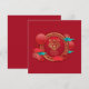 Un vibrante fondo rojo que presenta una cara de tigre estilizada en el centro, rodeada de elementos decorativos como patrones circulares dorados, nubes azules y faroles de papel rojo. El texto Feliz Año Nuevo se muestra de manera prominente en oro, enfatizando el tema del Año Nuevo Chino.