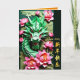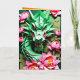 Recorte de papel del Dragón Verde con peonías rosadas en fondo verde oscuro + Deseos en chino + dorado 2024. Diseño en tarjeta de felicitación. Tarjeta postal y pegatina rectangular coincidentes. Perfecto para el Año Nuevo Chino del Dragón 2024. "El Dragón (chino simplificado: 龙; chino tradicional: 龍) es uno de los animales del ciclo de 12 años que aparecen en el zodíaco chino relacionado con el calendario chino. El Año del Dragón está asociado con el símbolo de la Rama Terrestre 辰, pronunciado chen. Un investigador académico ha propuesto que el carácter de la Rama Terrestre puede haber estado asociado con escorpiones; puede haber simbolizado la estrella Antares". Se puede decir que las personas nacidas dentro de estos rangos de fechas han nacido en el "Año del Dragón", y también llevan el siguiente signo elemental: 22 de enero de 1928 - 9 de febrero de 1929 = Dragón de Tierra,
