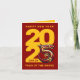 Celebre el Año de la Serpiente en 2025 con esta tarjeta de felicitación festiva, que presenta el año 2025 estilizado en una fuente amarilla brillante y negrita, y arte generado por IA de una serpiente asiática estilizada que reemplaza artísticamente al número 5 sobre un fondo rojo real. Personalice el mensaje como desee.