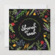 Rosh Hashaná - Año Nuevo Judío - Script Shana Tovah en una moderna guirnalda floral colorida... sobre fondo negro. Incluye deseos de Año Nuevo Hebreo. Una hermosa manera de desear a amigos y familiares un Shana Tovah - Año Nuevo Judío Feliz y Dulce. Personalice la parte posterior con su propio saludo y apellido.