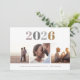 Un personalizado asequible imprimió tarjetas fotográficas de Año Nuevo con texto y colores completamente editables. Este sencillo diseño de moda presenta un diseño de 3 collage de fotos con la fecha del año nuevo en una tipografía serif moderna y neutra. Utilice las herramientas de diseño para personalizar del año y cambie los colores y tipos de letra para que coincidan con sus fotos. El saludo de abajo dice "Deseándote amar y alentar a lo largo del nuevo año". El lado inverso tiene un patrón de hoja botánica de coordinación o usa el espacio para fotos y texto adicionales. Puede elegir cualquier color de fondo, editar los tipos de letra y los colores del texto o cargar más fotos para crear una única tarjeta de fotos de vacaciones.