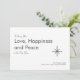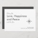 Simple tarjeta de vacaciones de Año Nuevo 2024, con un diseño de tipografía gris sobre fondo blanco. Con grabado de personalizable, puede añadir su propio nombre de familia. Una imagen gris de copo de nieve acentúa la parte delantera de la tarjeta y con un fondo gris en la parte posterior. Una forma sencilla de enviar tus deseos de amor y paz en el nuevo año.