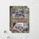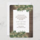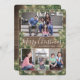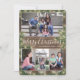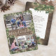 Send stylish joyful greetings and share your favorite pictures with a custom four photo collage holiday card. All text on this template is simple to customize to include any wording, such as Merry Christmas, Happy Holidays, Seasons Greetings, New Year Cheers etc. (IMAGE PLACEMENT TIP: An easy way to center a photo exactly how you want is to crop it before uploading to the Zazzle website.) The modern farmhouse style design features a rustic brown faux wood background, festive botanical watercolor pine greenery with string lights, simple typewriter typography, trendy handwritten style script calligraphy, and a unique photo grid with 4 images of your choice. Family and friends will love displaying this elegant personalized card.