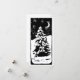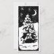 Estampa en lino blanco y negro de una escena invernal pacífica: un solitario abeto de pie en un paisaje nevado en la noche, con un cielo estrellado encima. "Feliz Navidad" escrito en la parte posterior.