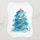 Acuarela de árbol azul con alegría, esperanza, paz, amor en tarjeta plana.