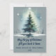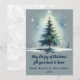 Tarjeta Festiva Árbol de estilo acuarela sobre fondo azul medio