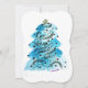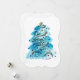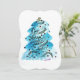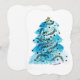 Acuarela de árbol azul con alegría, esperanza, paz, amor en tarjeta plana.