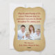 Un hermoso árbol con hojas doradas y un ligero polvo de nieve. Un entorno pacífico para las fiestas de Navidad. Un sentimiento cálido en el reverso, "Que la belleza tranquila de la temporada te brinde profunda alegría y cálidos recuerdos para atesorar durante todo el año venidero" y espacio para una foto debajo del texto.
