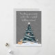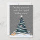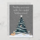 Tarjeta de Navidad/Fiestas con un árbol moderno rodeado de amigos del bosque.