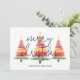 Hermosos acuarelas árboles de Navidad coronados con acento de estrella dorada en la parte delantera de estos Navidades llanos saludando tarjetas con Feliz Navidad y Feliz Año Nuevo con letras de moda. El saludo de su personalizado y los nombres están en la parte trasera. COINCIDIENDO elementos de nuestra colección.