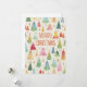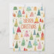 Una cédula festiva no fotográfica presenta ilustraciones acuáticos originales de coloridos árboles navideños.