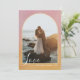Esta moderna tarjeta de vacaciones cuenta con una sola foto vertical enmarcada en un hermoso arco. El fondo tiene una textura rica y pintada con colores cálidos rosa y dorado. Personalice esta tarjeta plana con un saludo personalizado, texto de guión, nombre, año y foto vertical en la parte delantera. Elija entre una amplia gama de tipos de papel. Seleccione la tarjeta rectangular de 5" x 7" o agregue una forma de borde de corte de tinta. Los elementos coincidentes están disponibles. Perfecto para Navidades, vacaciones o tarjeta de foto boda para compartir con la familia y amigos.