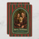 Envía deseos de vacaciones a amigos y familiares con esta elegante tarjeta de vacaciones con foto dibujada a mano. Con un esquema de color verde y rojo vintage con un fondo de patrón de rayas dibujadas a mano y un marco de foto de arco, combinado con una tipografía retro que dice 'Feliz Navidad' con una nota personalizable de usted que dice 'Con Amor, {Nombre de la Familia}'. La parte trasera de la tarjeta presenta un fondo audaz a rayas con un detalle sutil de copos de nieve.