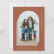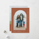 Estas sencillas y elegantes tarjetas navideñas dicen "Feliz Navidad" y muestran tu foto en una forma de arco moderno sobre un fondo de terracota, con otro arco beige neutro como acento sobre un fondo blanco. La parte trasera de la tarjeta tiene espacio para una foto adicional, además de un breve mensaje personal.
