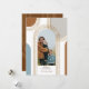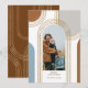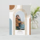 Moderna tarjeta geométrica de 1 foto arco dorado de vacaciones. Características de diseño que superponen el patrón de arco dorado con marcos de foto de un arco. El reverso presenta un diseño geométrico moderno de arcos de oro que se complementa con el diseño de las tarjetas de vacaciones delanteras. Puede cambiar el color de fondo así como las formas de arco a cualquier color para complementar la foto. Diseñado por Moodthology Papery.