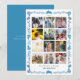Esta linda tarjeta de collage de 12 fotos de "qué año" para las fiestas presenta un fondo blanco con conejo de arte popular y patrón de hoja en azul. Personalízala según tus necesidades. Puedes encontrar productos coincidentes en mi tienda.