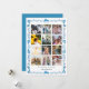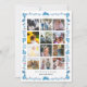 Esta linda tarjeta de collage de 12 fotos de vacaciones "oh qué año" cuenta con un fondo blanco con patrón de conejo y hoja de arte popular en azul. Personalízala según tus necesidades. Puedes encontrar productos coincidentes en mi tienda.