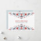 Inspirado en el tradicional Arte Popular Escandinavo, este diseño representa objetos de la naturaleza: flores, corazón, animales, pájaros, árboles y plantas y caballos Dala en una paleta clásica nórdica de tonos azules y rojos.
