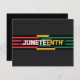Esta obra de arte gráfico audaz muestra poderosamente "JUNETEENTH" en un llamativo tipo de letra blanco y amarillo contra un fondo negro sólido. El diseño incorpora fuertes franjas horizontales en los colores panafricanos de rojo, amarillo y verde, que simbolizan la unidad, la liberación y el respeto. Este impactante artículo transmite directamente el significado del 10 de junio. Muéstralo para conmemorar este importante día. Perfecto para celebrar el 12 de junio y honrar el legado afroamericano. Un regalo perfecto para los eventos del 19 de junio y para aquellos que valoran el diseño impactante.