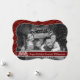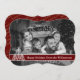 Un moderno diseño de tarjetas de Navidades de fotografía con una foto familiar que llena la cara de la tarjeta y se convierte automáticamente en blanco y negro. Arte moderno divertido decoración de árbol de Navidad con banda de texto rojo oscuro para tus palabras.