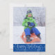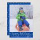 El saludo FELIZ HOLIDAYS está en un guión escrito a mano en blanco, con un borde azul brillante editable. (PUNTO DE FOTO: Para obtener resultados más rápidos/mejores, elija una foto con el sujeto en el medio y/o pre-recorte en una forma similar como se muestra ANTES de subir y rellenará el espacio de la foto proporcionado perfectamente.) CAMBIO DE COLOR: Puede cambiar el color de fondo azul en la parte delantera y trasera para coordinar con su foto haciendo clic en la ficha PERSONALIZAR. Póngase en contacto con el diseñador si desea modificar este diseño o en otro producto.