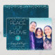 “Paz, alegría y amor”. Una divertida y juguetona ilustración de copo de nieve y tipografía moderna sobre un fondo de acuarela de mármol azul turquesa intenso y rico te ayuda a recibir la temporada navideña, junto con la foto personalizada que elijas. El foil de turquesa falso y los puntos de confeti blancos enmarcan la tarjeta. Siente el calor y la alegría de las fiestas siempre que envíes esta impresionante, gráfica y personalizada tarjeta de felicitación plana con foto. También están disponibles sobres, pegatinas, bolsas, papel de regalo, bandejas, decoración del hogar y más que combinan. ¡Envía esto a alguien especial!