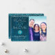 Tarjeta Festiva Azul Foto Paz Alegría Amor Escritura Copo de Nieve