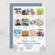 Los Navidades de "qué año" azul y blanco con un collage de 12 fotos del año en revisión. Diseño con copos de nieve. Personalízalo mensualmente con un mensaje de los momentos más importantes de tu familia.