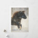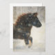 Una llamativa ilustración en acuarela de un caballo galopando a través de la nieve que cae suavemente. La rica y fluida melena y el movimiento dinámico capturan el espíritu de la belleza salvaje del invierno. Perfecto como tarjeta de Navidad, saludo de temporada o nota de inspiración durante todo el año para cualquier amante de los caballos o entusiasta de la naturaleza. En blanco por dentro y esperando por tu saludo personal.