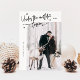 Tarjeta de vacaciones minimalista y elegante para los recién casados que celebran su primera Navidad juntos como marido y mujer, con un texto que dice "Under The Mistletoe Forever" sobre tu foto con un rincón curvo. El fondo es blanco.