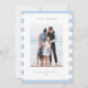 Comparte saludos de vacaciones con estas tarjetas de fotos de Hanukkah mostrando tu juego de fotos favorito sobre un fondo de rayas azul claro y blancas. Un área de mensajes editable le permite personalizar su Chanukah o saludo de vacaciones. Añada el nombre de su familia o nombres debajo del año.