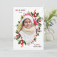 Un hermoso y moderno diseño de color verde y rojo "Be Merry" con hojas y bayas huecas enmarca tu foto de 4 x 6" retrato en un marco geométrico de diamante. Personalice el texto del personalizado con su apellido y el año.