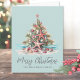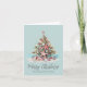 Happy Holidays! Share some coastal cheer with this folded holiday card featuring a festive Christmas tree made of seashells and topped with a starfish. The design has a teal blue background on both the front and back, with gray and black fonts for a clean, coastal-inspired look. The watercolor artwork includes a sandy base with soft teal ocean waves and a rustic, slightly distressed style for a relaxed yet elegant feel. "Happy Holidays" is displayed in elegant script at the top of the front cover, with space for your family name or a short custom message at the bottom. Inside, there’s a customizable message area for your note or a handwritten touch. A mix of simple serif and script fonts keeps the style polished and casual. Available as a printed card or a downloadable digital version for emailing or printing locally.