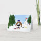 El exclusivo diseño de Beagle en invierno es maravilloso. Beagle con un poco de nieve en su nariz. Un hombre de nieve irritado mira. Para evitar el frío que el Beagle tiene sobre una bufanda y un gorra que son los colores de su país.