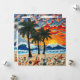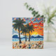 Keep in touch with a friend and say hi with this pretty card featuring an impasto oil painting style ai illustration of a beach full of palm trees, sea glass, sea shells and ocean waves at sunset. A bright colorful mesh of colors make this coastal art vibrant and beautiful!