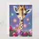 Tarjeta Festiva Bebé Jirafa Adorable con Acebo y Brillo
