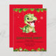 Tarjeta Festiva Bebé lindo dinosaurio sostiene fiesta de Navidades
