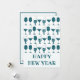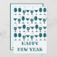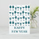 Celebra el Año Nuevo 2025 con estas divertidas y festivas tarjetas de felicitación para la víspera de Año Nuevo. Estas adorables tarjetas retro de Año Nuevo presentan un patrón divertido de vasos de cóctel en un color azul verdoso. El texto dice “FELIZ AÑO NUEVO” en un texto personalizable de moda. Personaliza la parte trasera con una nota y tu firma.