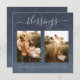 Tarjeta fotográfica navideña moderna con bendiciones de texto en escritura blanca y elegante sobre un fondo de color azul oscuro. Simplemente agrega tu nombre y fotos familiares favoritas a esta hermosa tarjeta de Navidades personalizada y envíela a tu familia y amigos! Diseñado exclusivamente para usted por Happy Dolphin Studio.