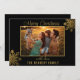 Tarjeta Festiva Black And Gold Snowflake Merry Christmas Photo