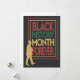 This powerful typographic design features the statement “Black History Month Forever” in bold, high-contrast lettering framed by clean graphic lines. A silhouetted figure walking forward adds a sense of movement, progress, and reflection. The minimalist black-and-white composition emphasizes strength, remembrance, and cultural pride, creating a timeless visual message centered on history, identity, and continued recognition.