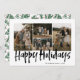 La tarjeta navideña Black Modern Lettering Four Photo Happy Holiday Card incluye cuatro fotos en la parte delantera y otra en la parte trasera con espacio para tu mensaje más largo.